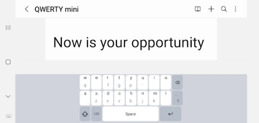 Unlike standard QWERTY (26 keys), QWERTY mini reduces the layout to just 16 keys in 2 rows, keeping typing natural and efficient.