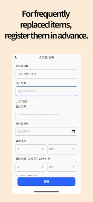 By recording the usage cycle of household essentials like toothpaste, shampoo, and detergent, the app automatically calculates the next replacement date and sends you a reminder.