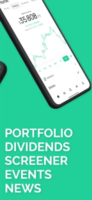 Stock Events displays important events in a calendar like view to help you keep up with important events as well as a dividend and portfolio tracker.